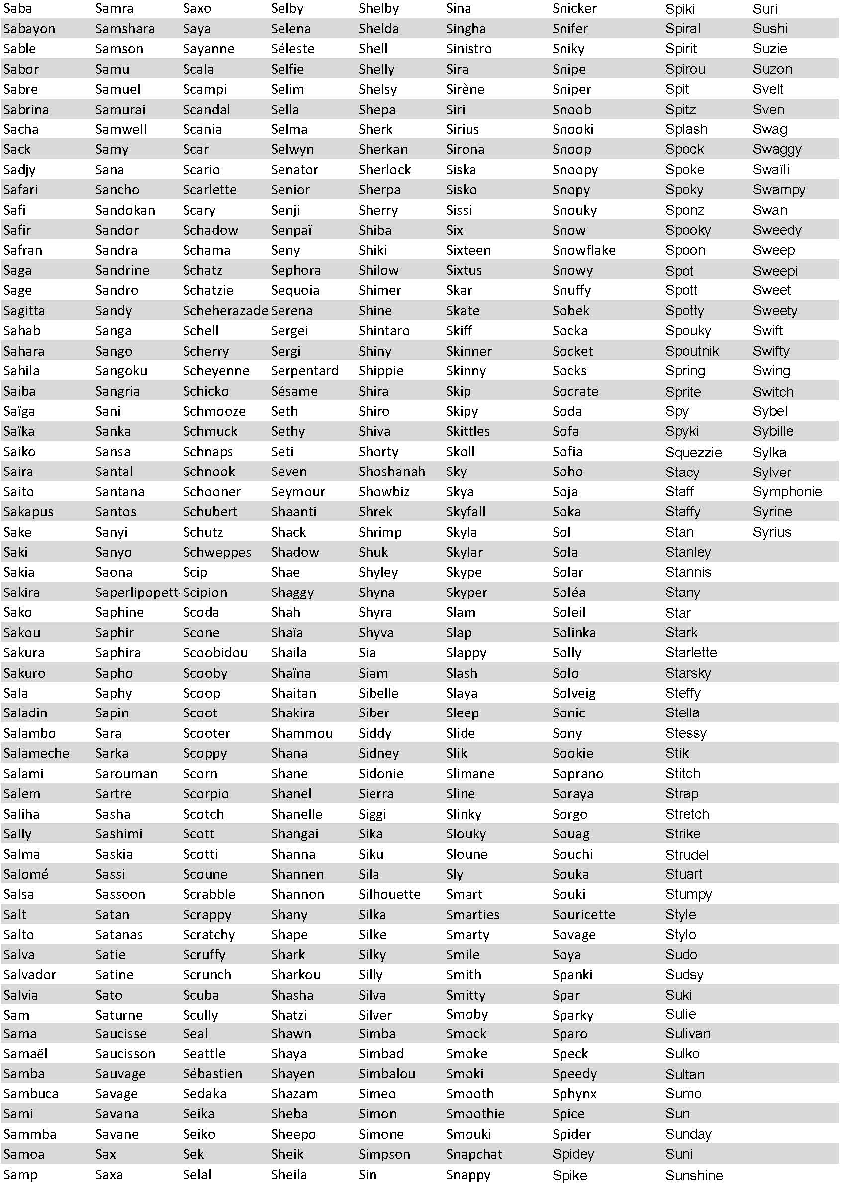 Noms en "S" pour chiens et chats...