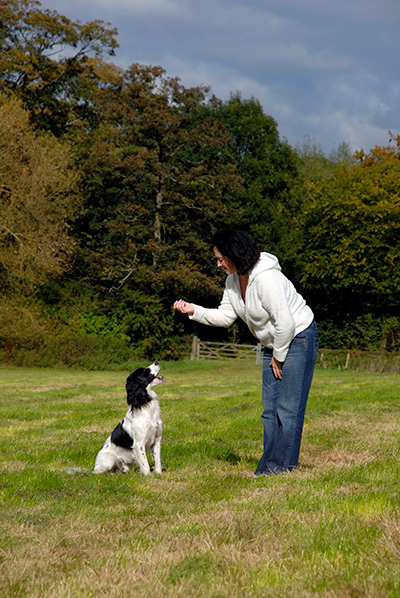 Il est possible également de valoriser un acte spontanément réalisé par le chien : on dit « assis » ou « couché » lorsque le chien est dans la position. Il associe alors naturellement le mot à sa posture. Ensuite, lorsque le mot est prononcé il comprend quelle attitude il doit adopter.