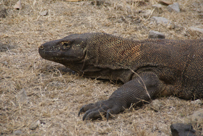 >  Le plus grand des varans, le varan de Komodo, vit en Indonésie. Il mesure 2 à 3 m de long et pèse jusqu’à 70 kg. Il peut manger un homme…